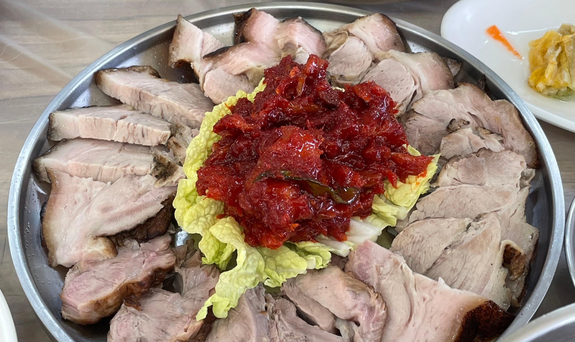 저녁은 수육으로 마무리했어요. 여행지에서 저녁으로 수육이라니, 왠지 더 특별하게 느껴지지 않나요?